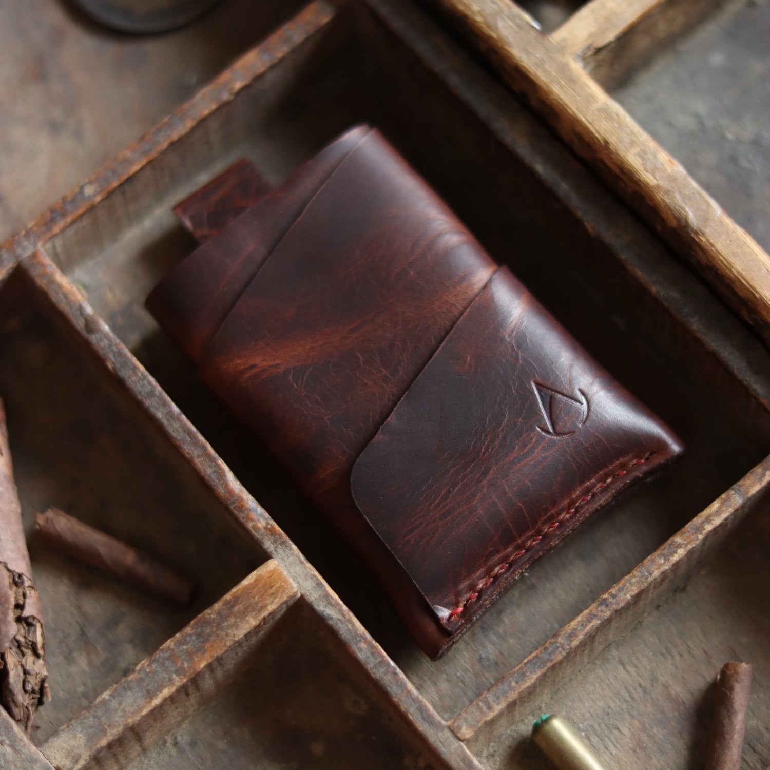 Badalassi Waxy is a full grain vegetable tanned leather that has a waxed surface which gives it a pull-up effect (when bent or folded it changes color). This leather patinas incredibly well and will get better with age. It burnishes incredibly well resulting in those glass edges that everybody is chasing after.
