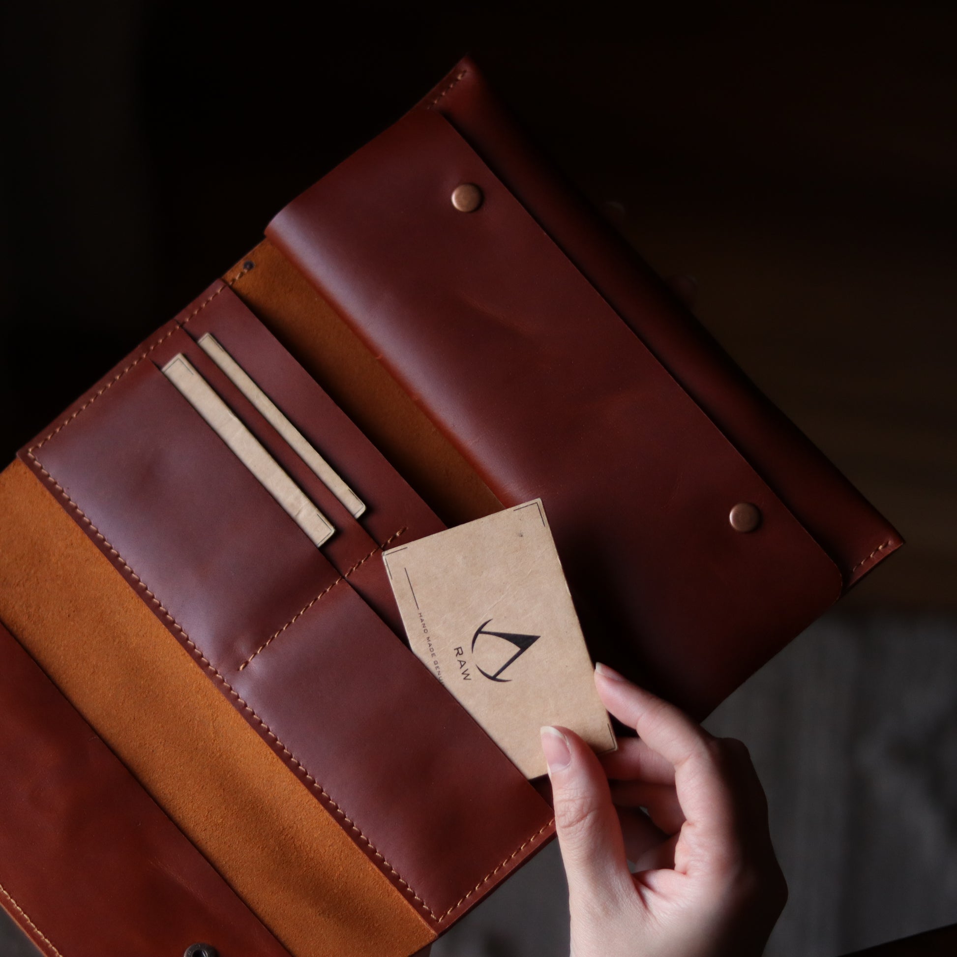 Made from premium pull-up cow leather in a rich tan brown tone and crafted to develop a graceful patina over time, this wallet is designed for women who value both elegance and function. Its precise hand-stitched finish ensures lasting durability, while the spacious interior keeps your essentials beautifully organized — from cards and cash to your mobile phone.